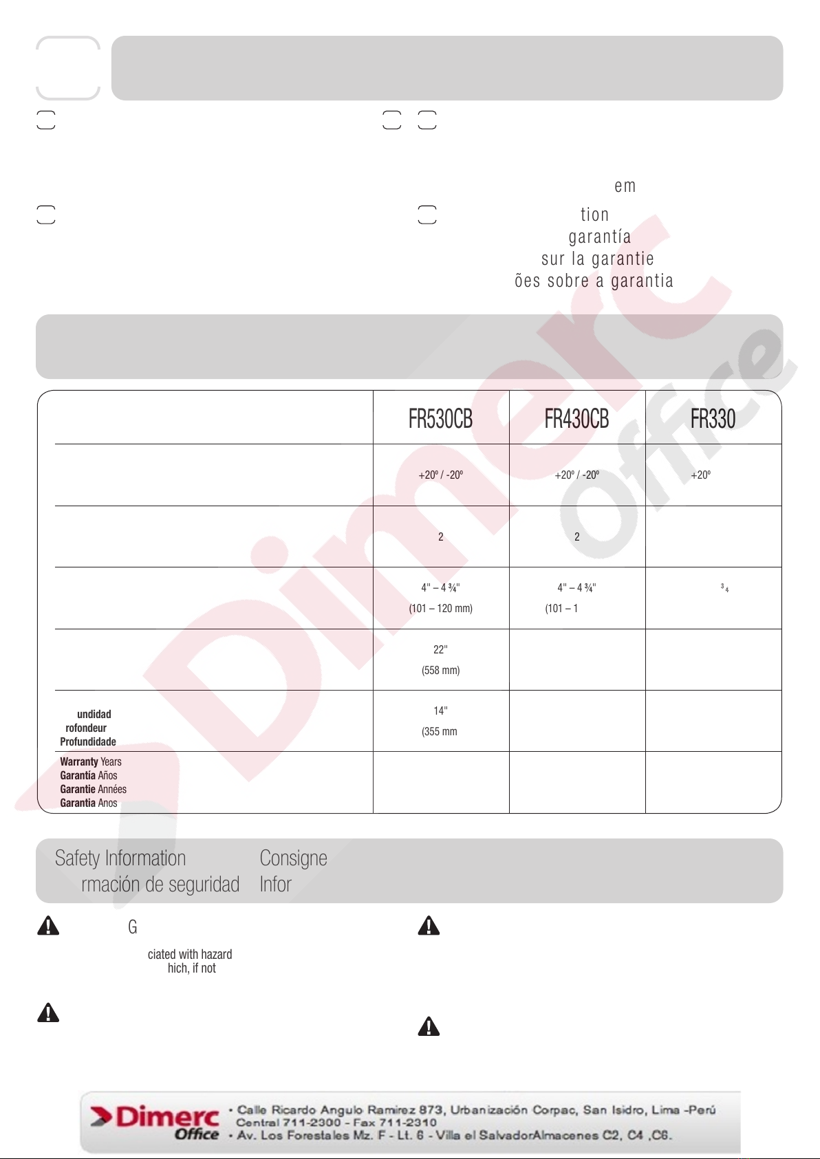 anos, e o modelo FR330 estará livre de defeitos de material e fabricação por dois anos. A