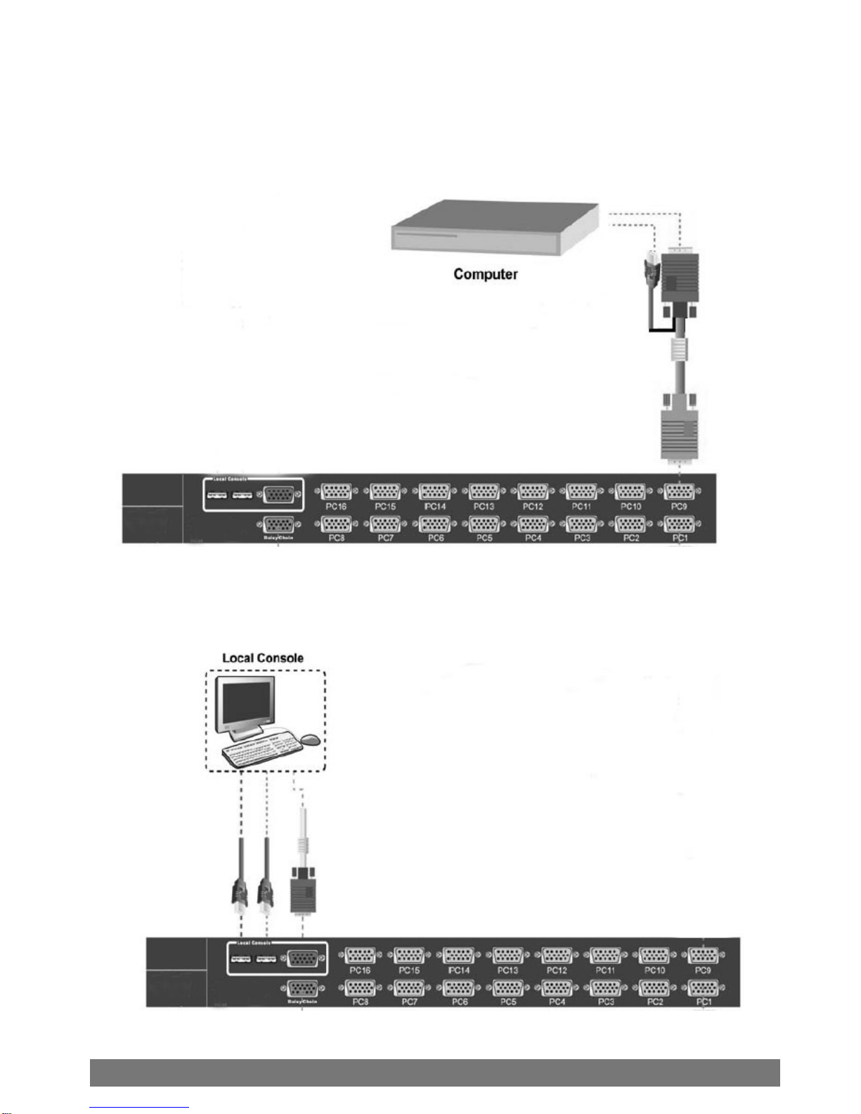 16 ports KVM switch. It supports both PS/2 and USB keyboard/mouse connection without