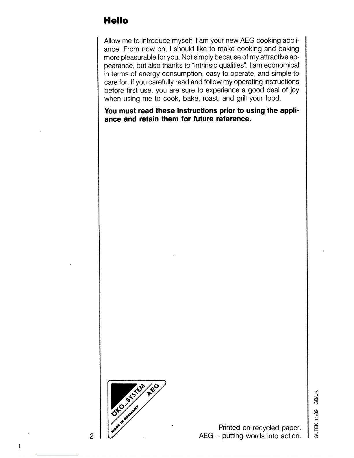 AEG U03070 Manuale utente
