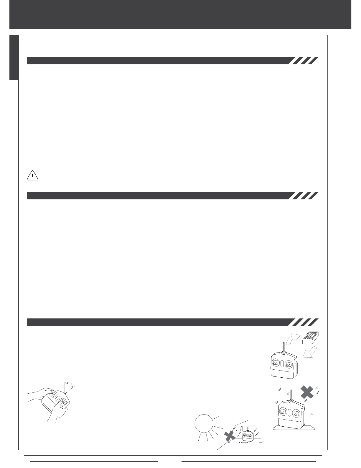 l Before use, double-check that the transmitter and receiver batteries are sufciently charged.