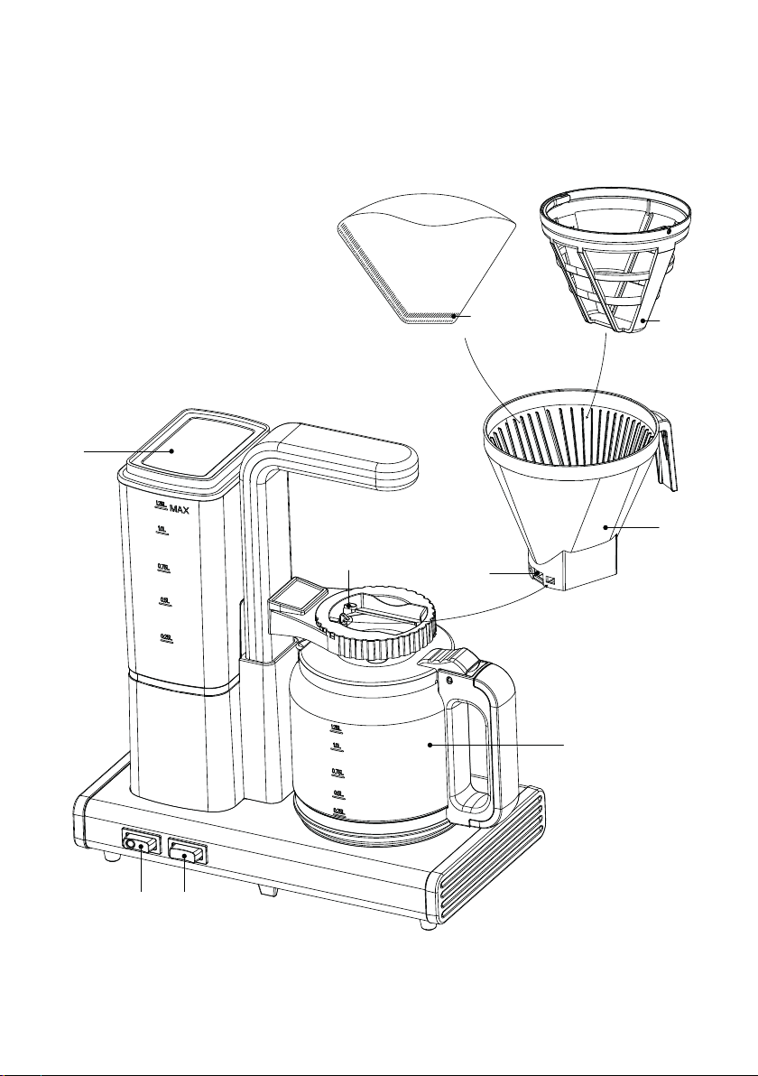 3. 1x4 Kaffeefilter (nicht enthalten)