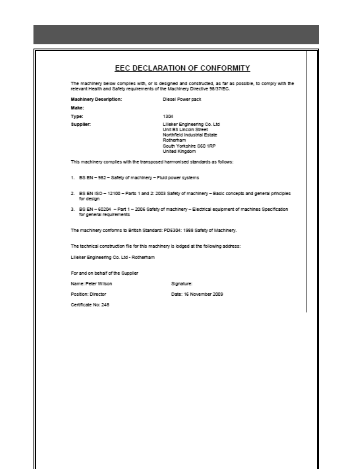 Hydraulic Oil Reservoir cap acity max ltrs (imp. Gals) 14.0 (3.11)