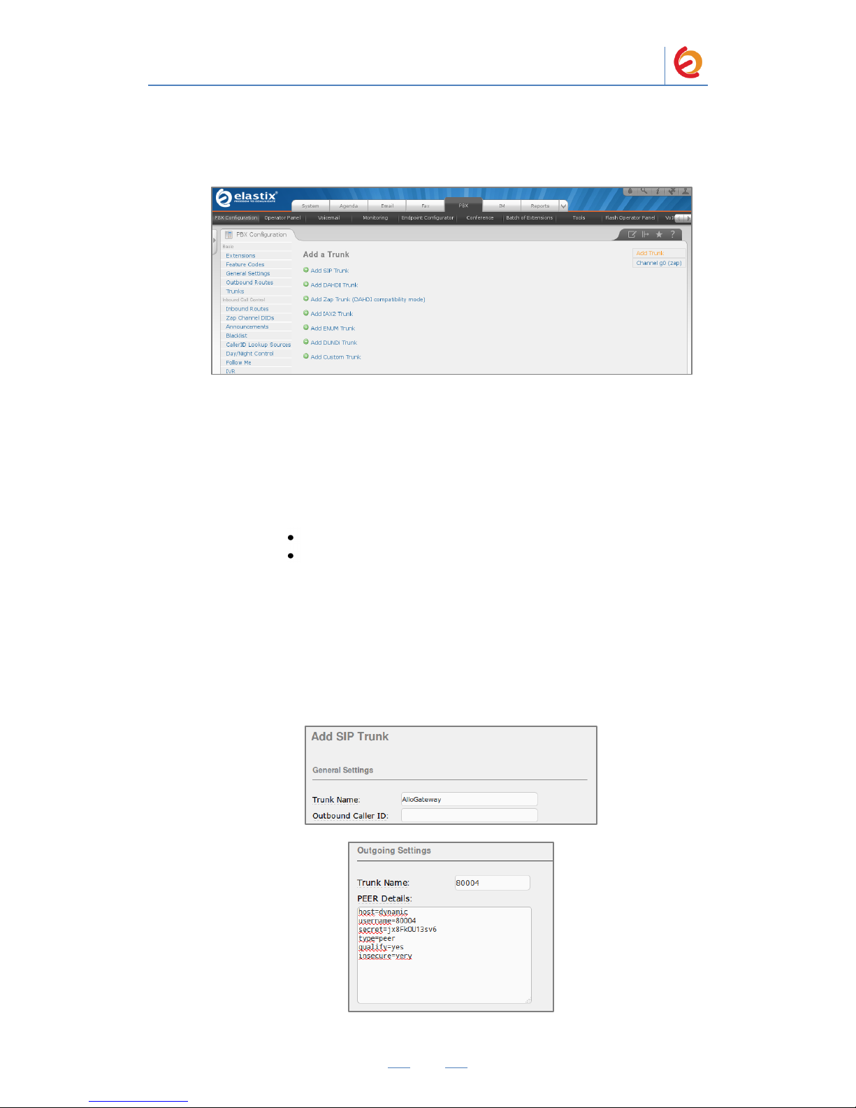 5. Go to “PBX Configuration => Trunks => Add SIP Trunk”, see Figure 4-3. This will