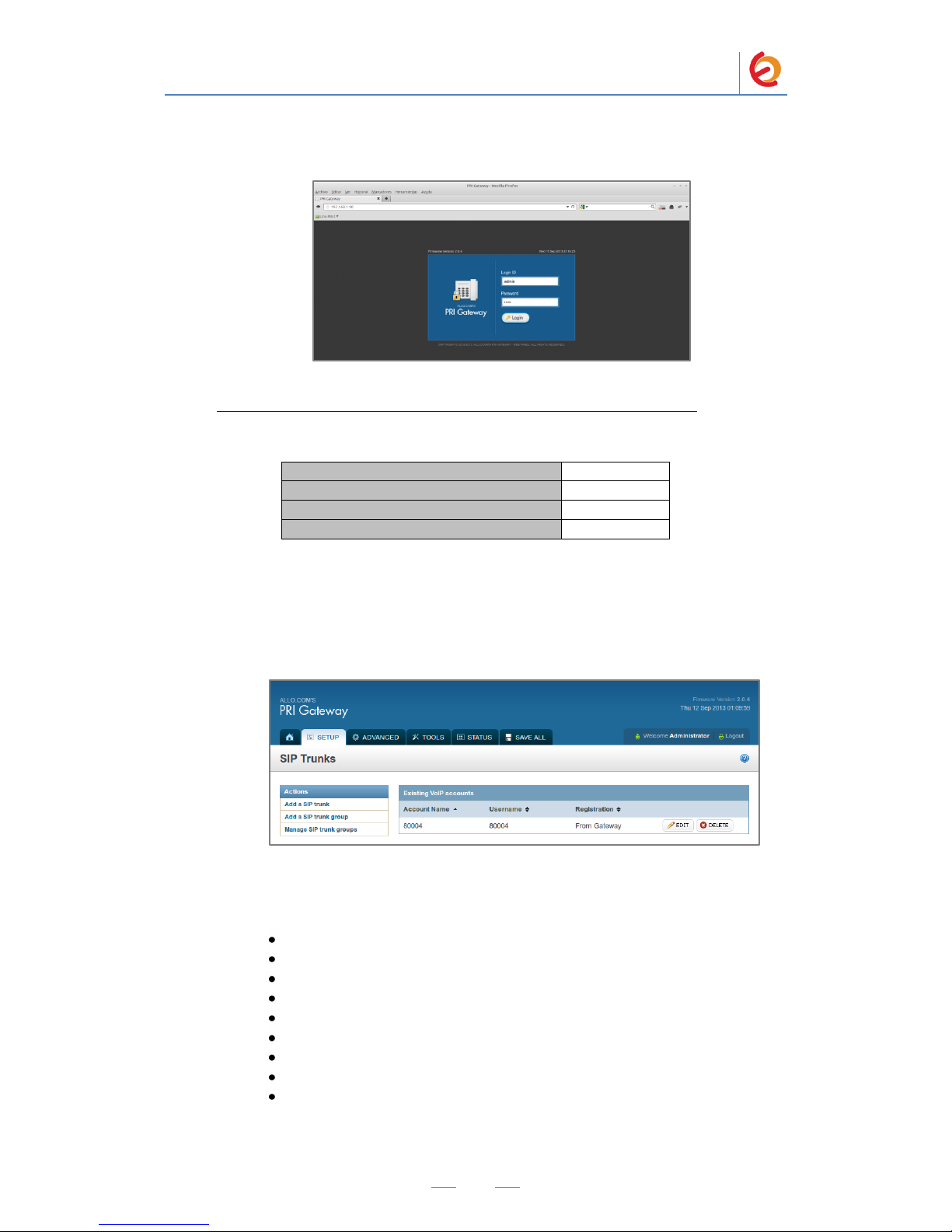 Go to the gateway‟s WebUI by pointing your browser to the Allo PRI Gateway‟s IP