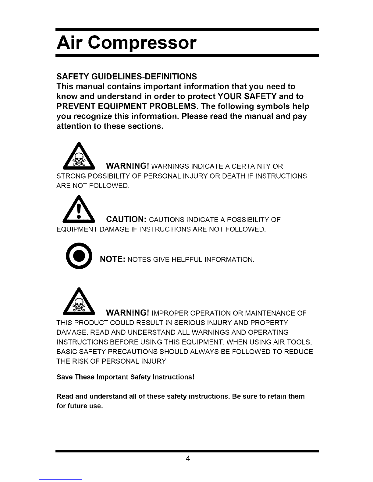 on the air compressor tank can severely impair tank strength and cause an extremely