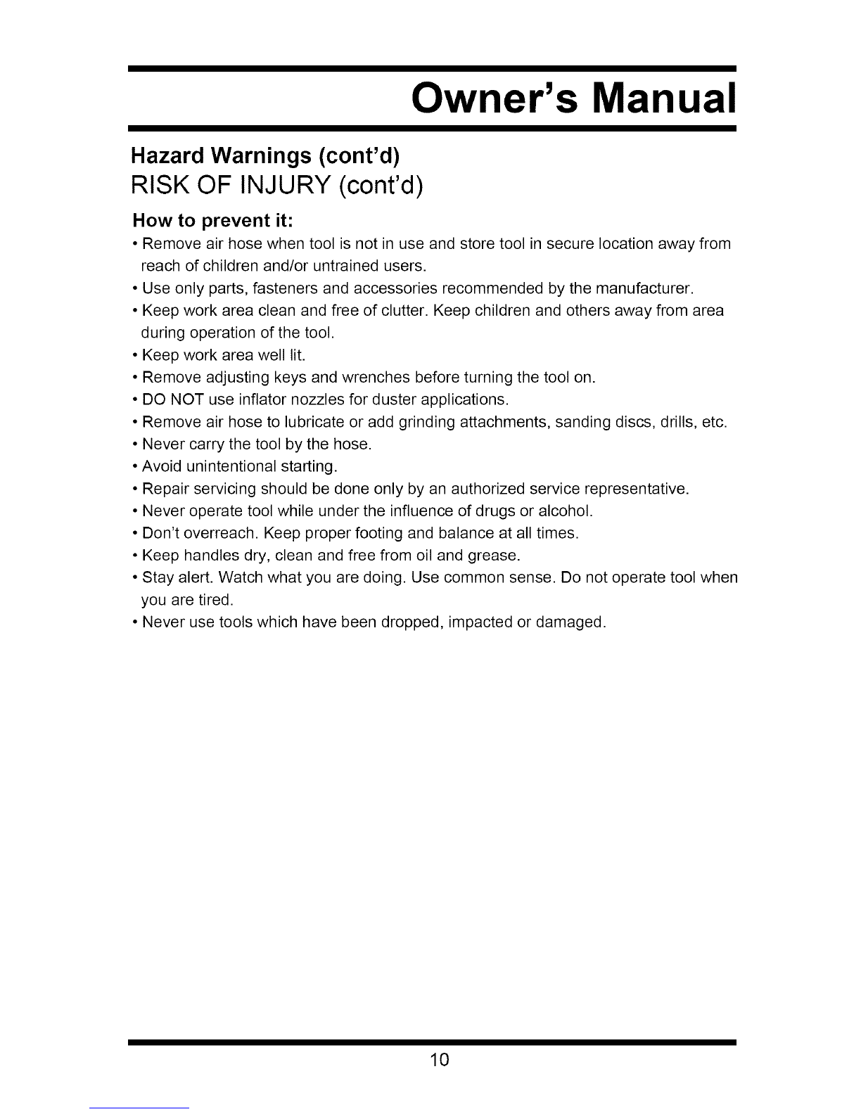 basic safety precautions when using air tools to reduce the risk of personal injury.