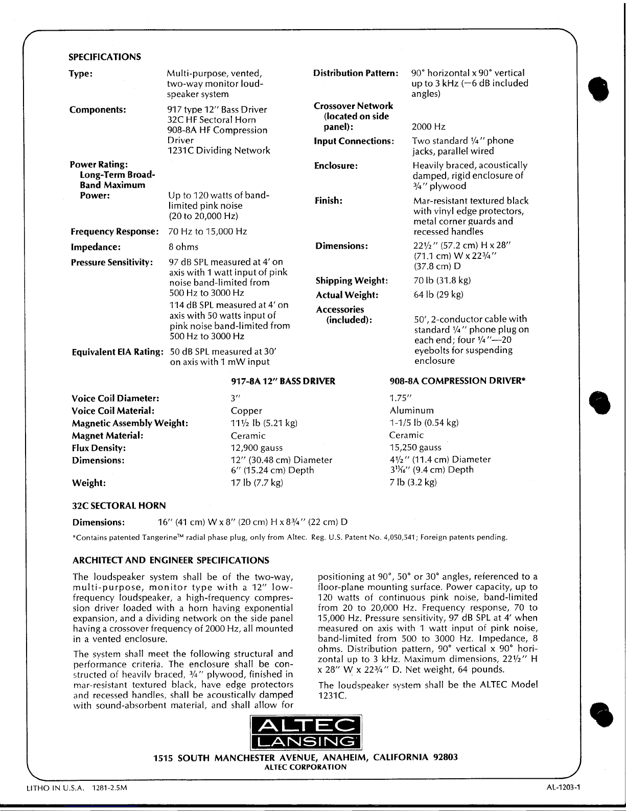 Altec Lansing 1231C SPEAKER SYSTEM Manuale utente