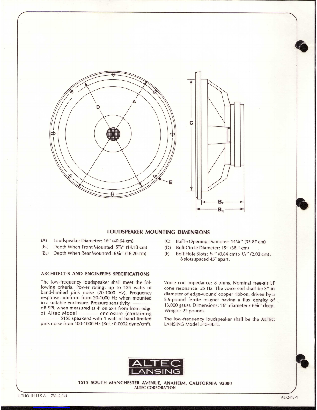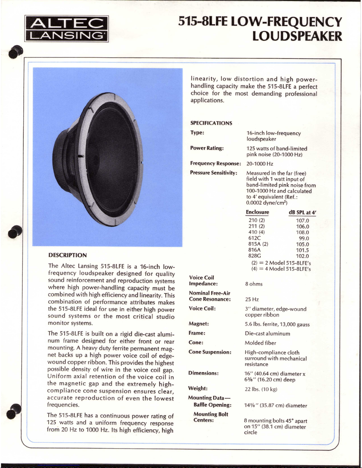 Altec Lansing 515-8LFE LF SPEAKER Manuale utente