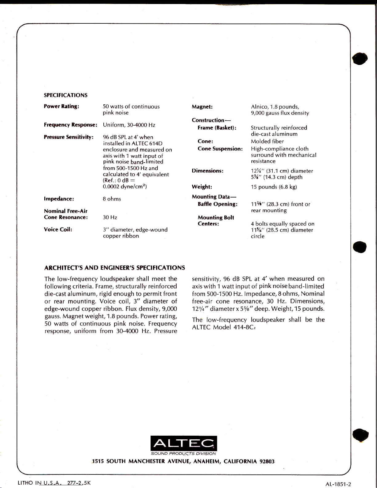 Altec 414-8C Manuale utente