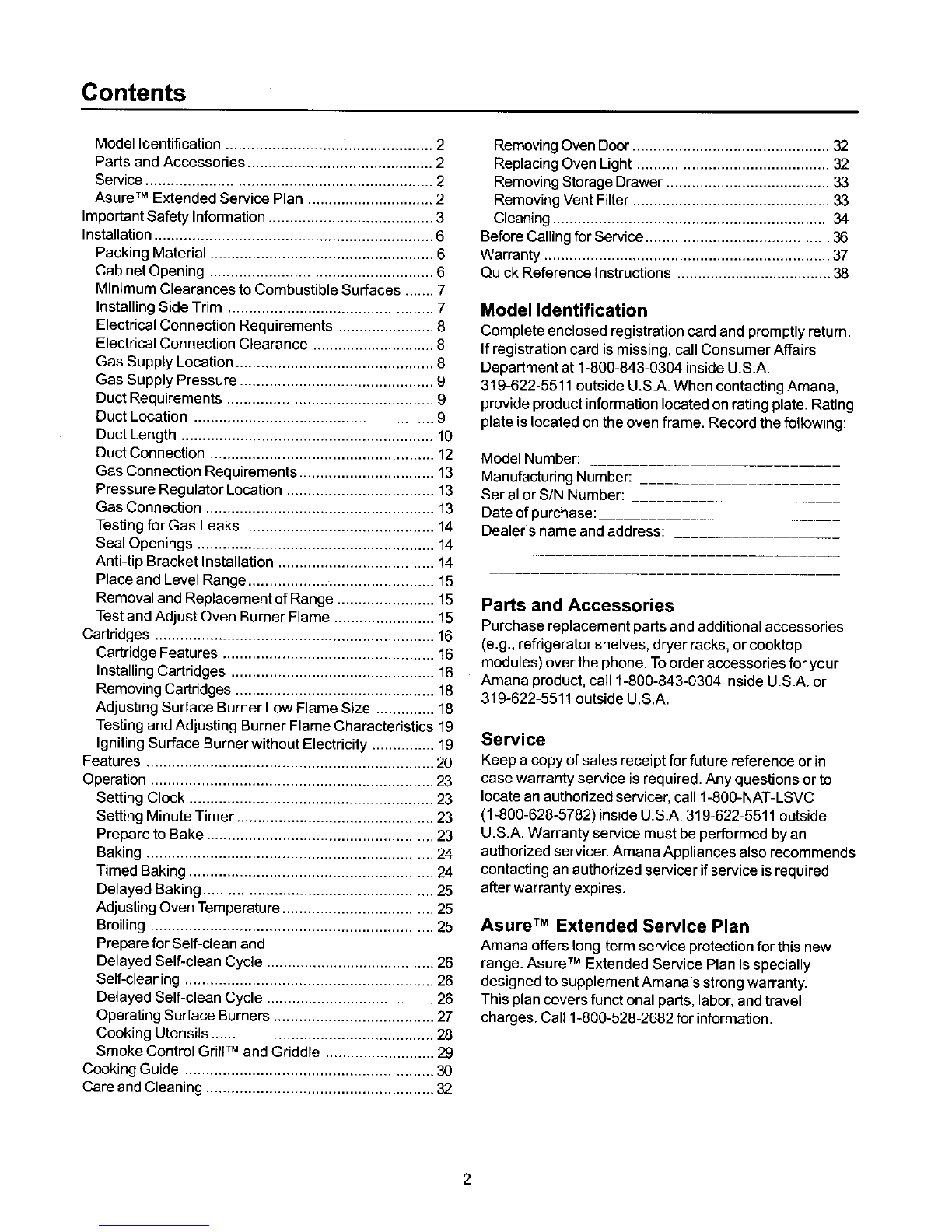 Asure TM Extended Service Plan .............................. 2