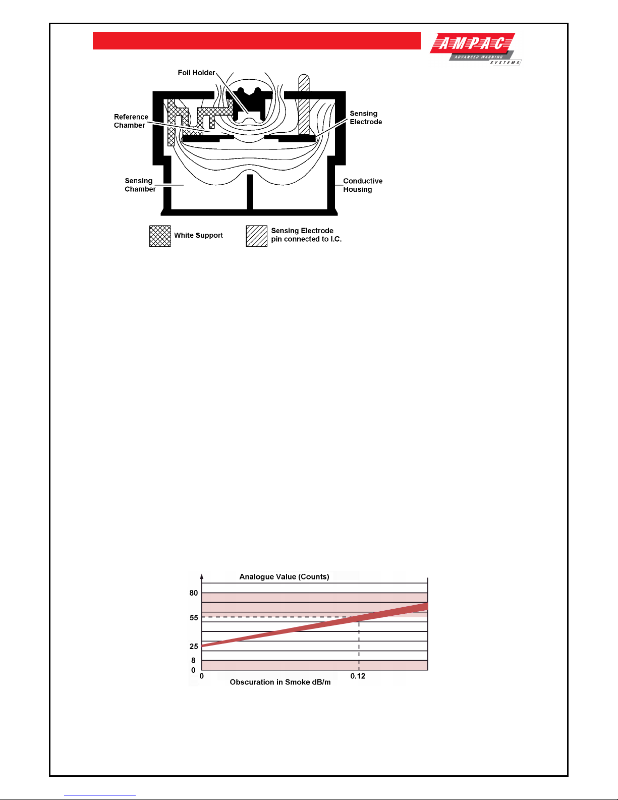 smouldering fires. The detector also senses air temperature. This temperature sensitivity allows the