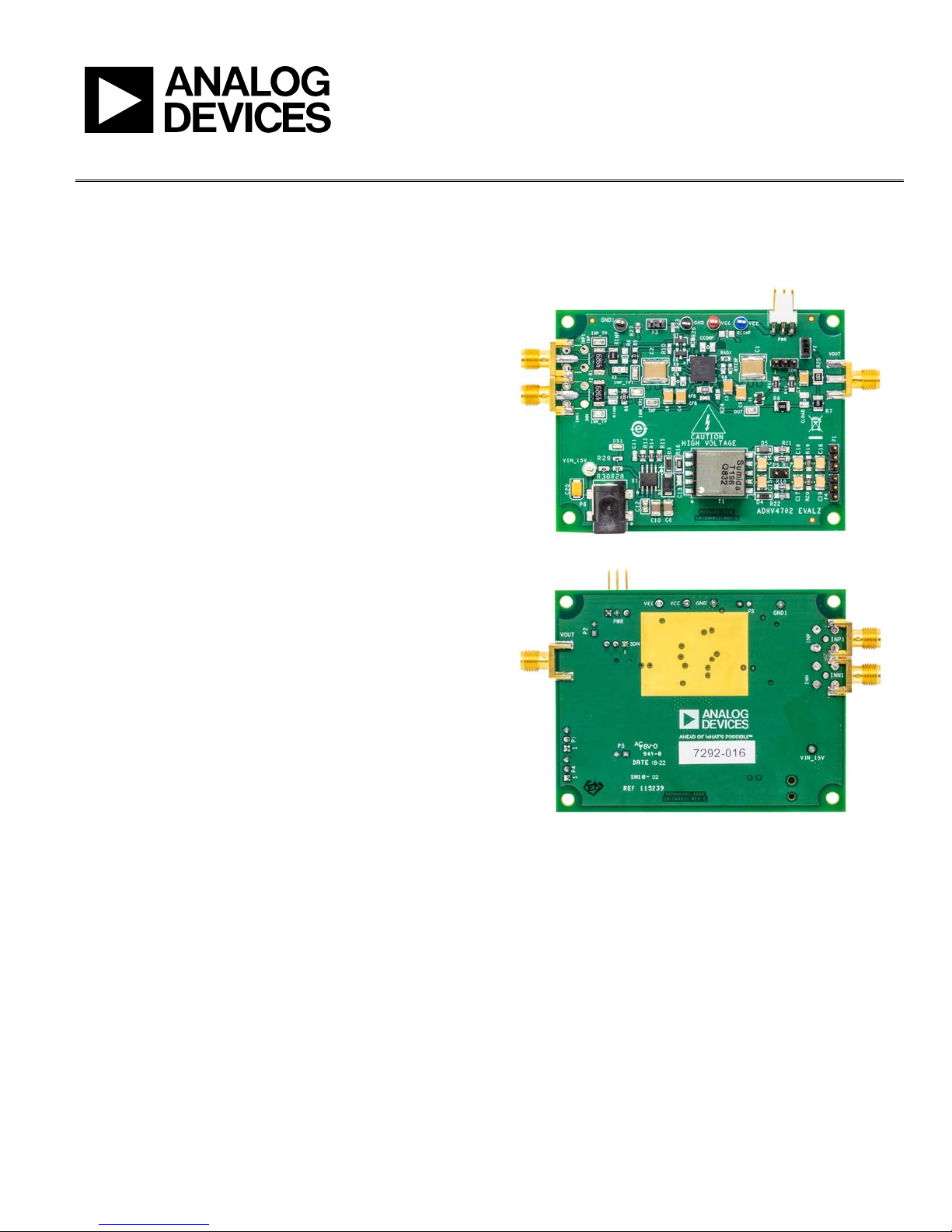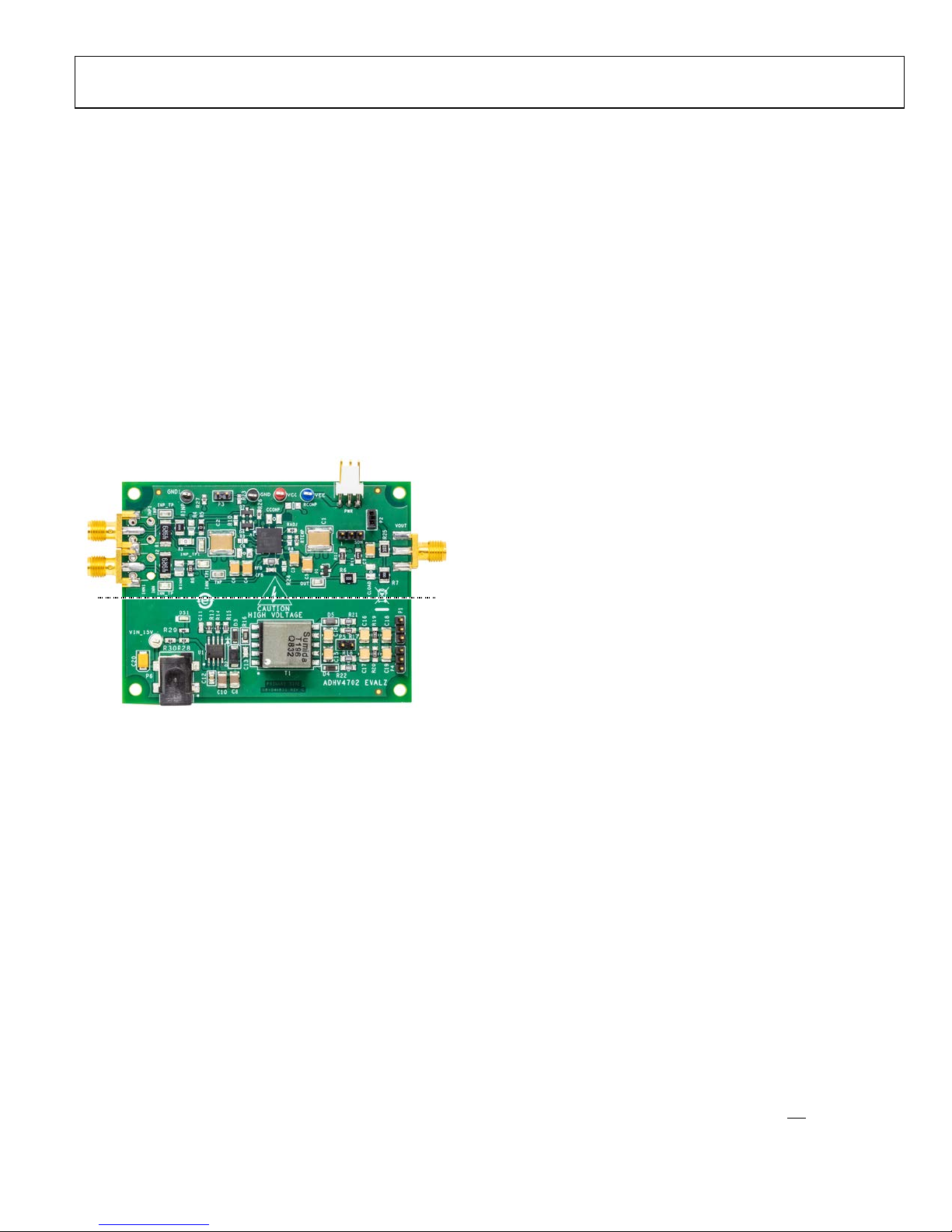 The E VA L -ADHV4702-1CPZ evaluation board is equipped