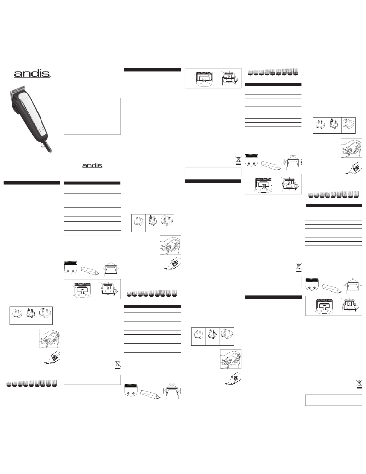 Lees onderstaande instructies vóór gebruik van uw nieuwe Andis tondeuse. Als u goed zorg draagt