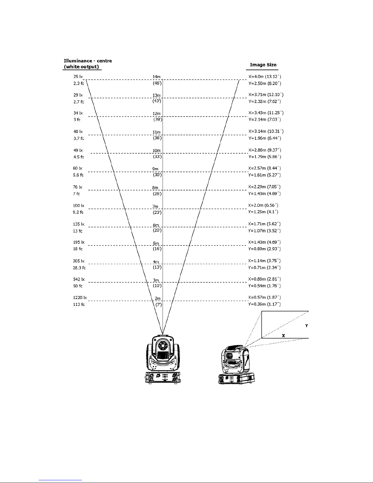 There is a chart of throw distance ratio of 3.5 : 1 to assist you in determining the ideal location for your
