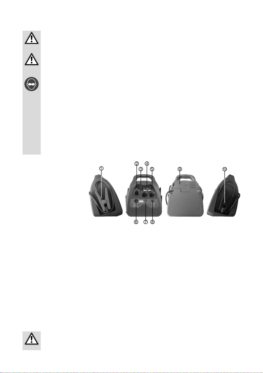 • Le bloc d‘alimentation est uniquement prévu comme aide au démarrage pour les véhicules automobiles équipés de leur