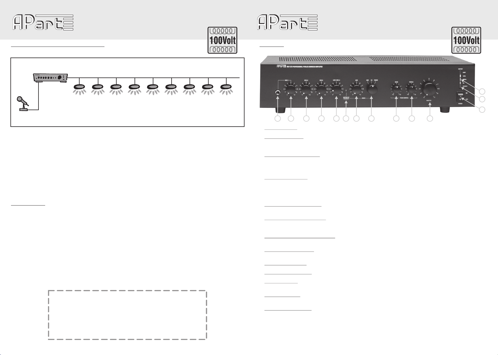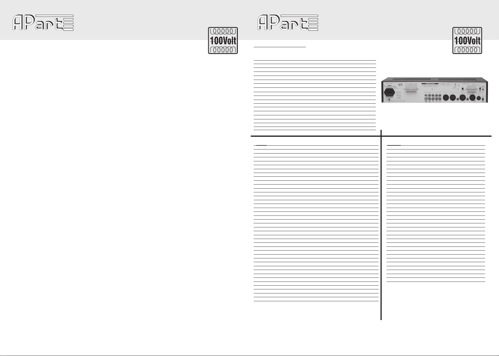 phone jack or via a XLR3, DIN 5 or euro block connector at the back. When needed, two APart paging