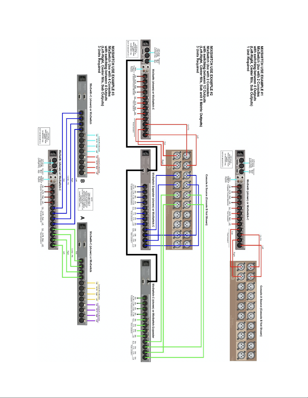 additional console sources. A MixSwitch-C is plugged into input A and a MixSwitch-C plugged into input B of a master