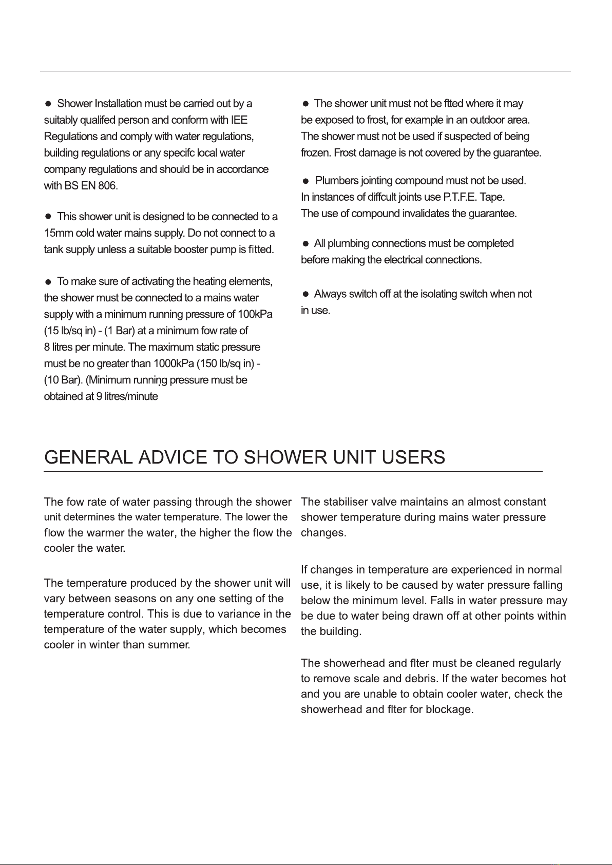 SPARE PART DETAILS FOR INDULGE TOUCH WATER HEATERS