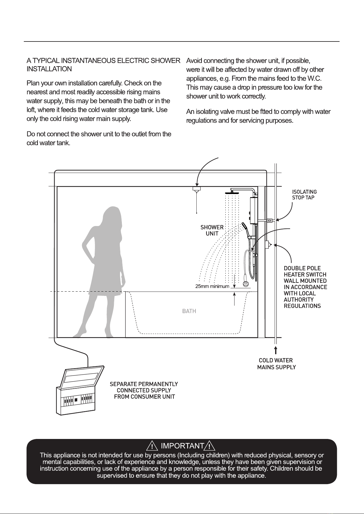 NON ROTATION SHOWER ARM AND HEATER CONNECTOR