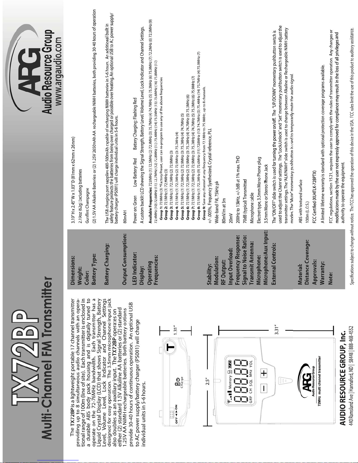 Audio Resource Group: TX72BP Transmitter Manual OM-028