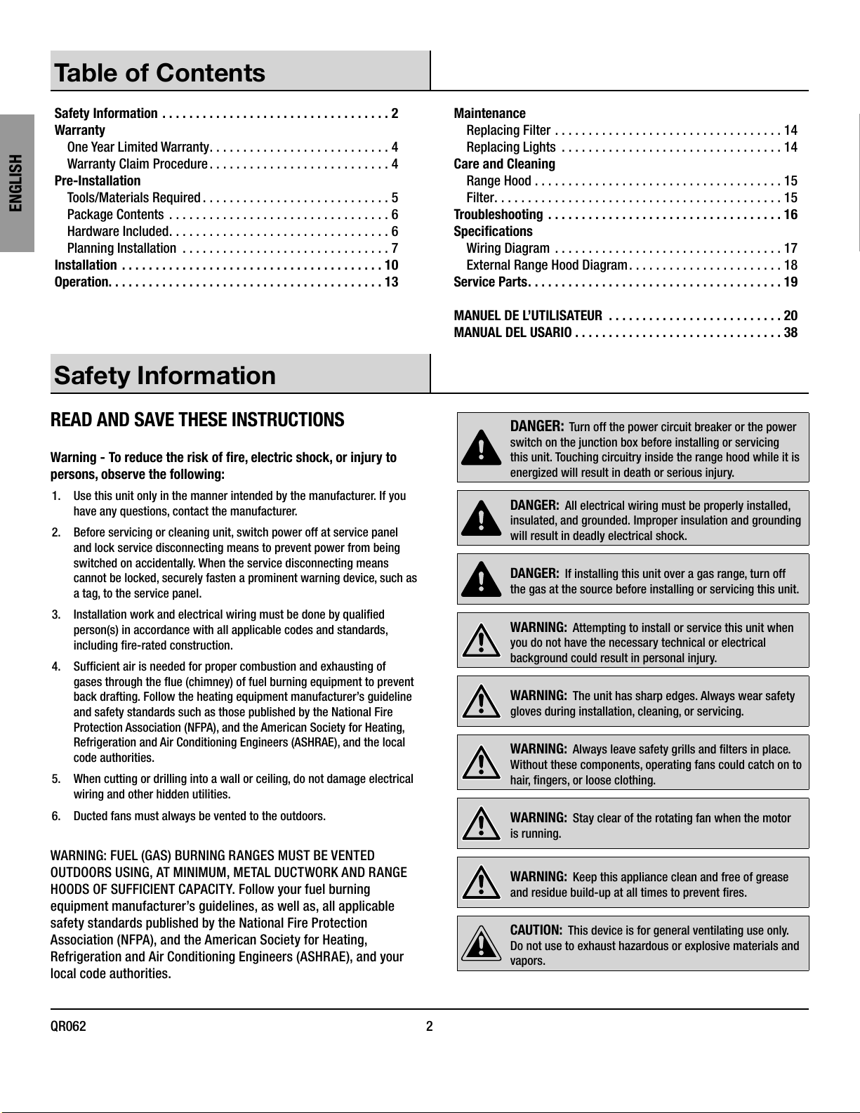 Range Hood .....................................15