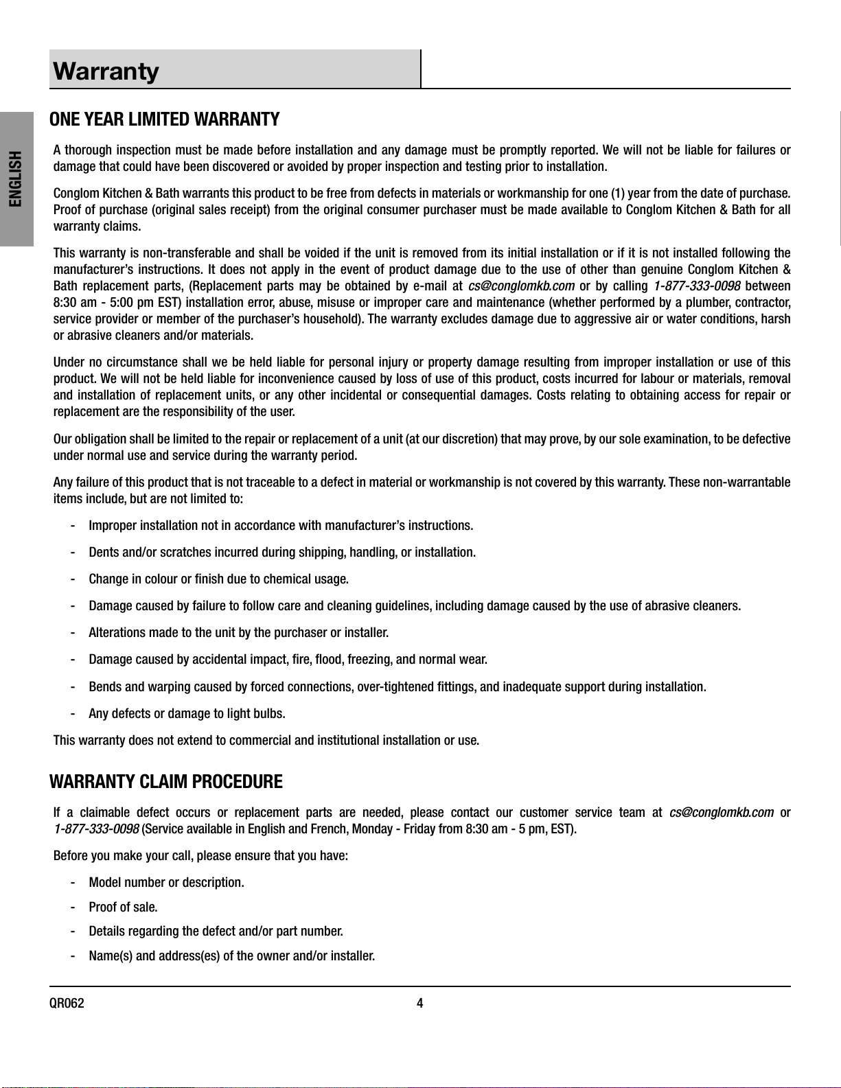 Warranty Claim Procedure...........................4