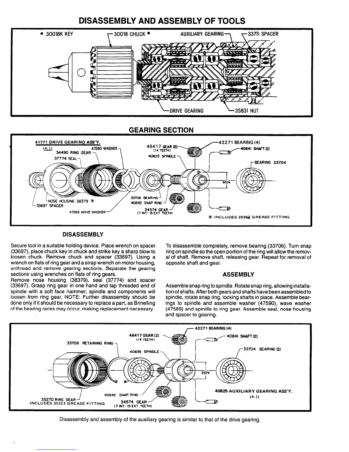 oz. (7 g) of grease per set of planetary gearing.
