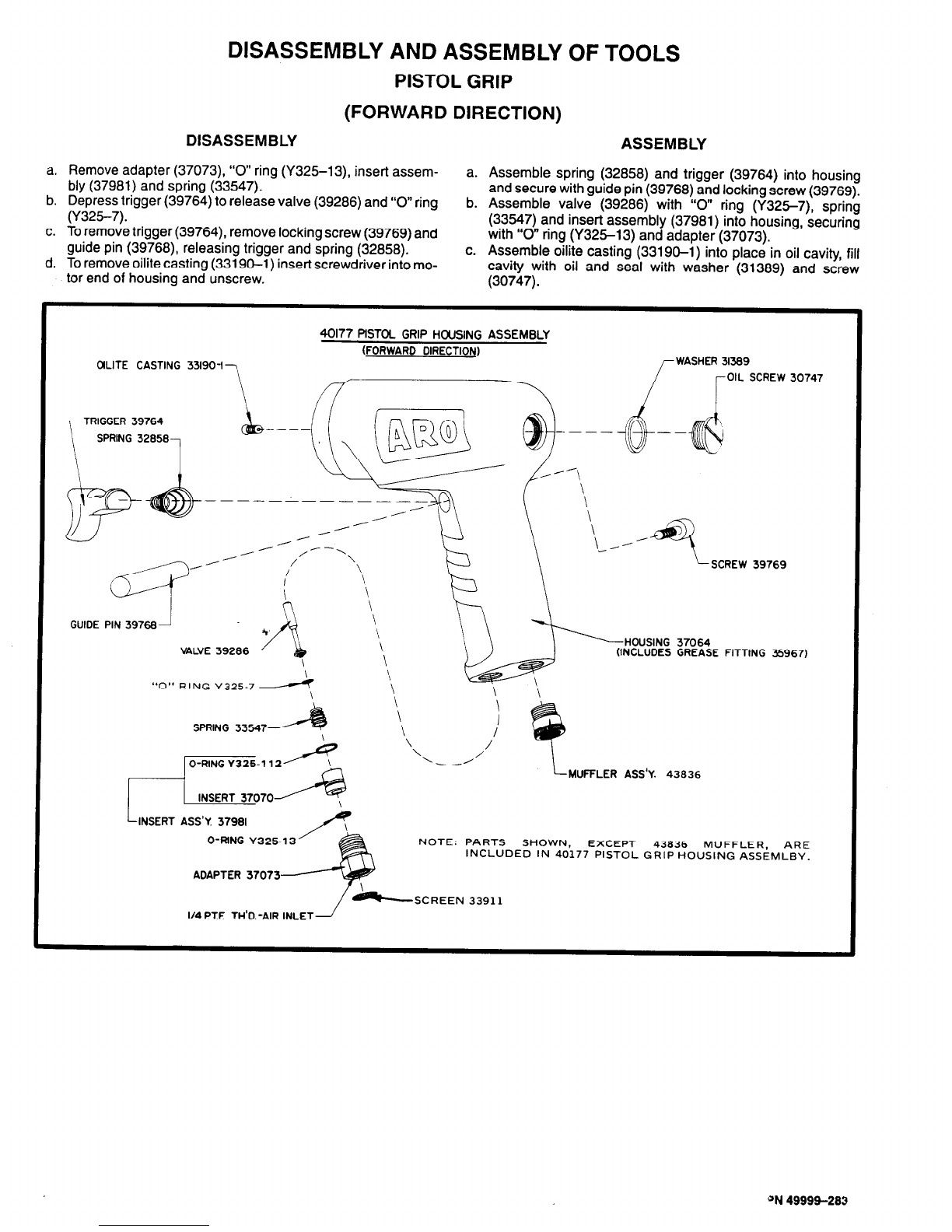 For parts and service information, contact your local ARO distributor, or the Customer Service Dept. of the Ingersoll-Rand Dis-