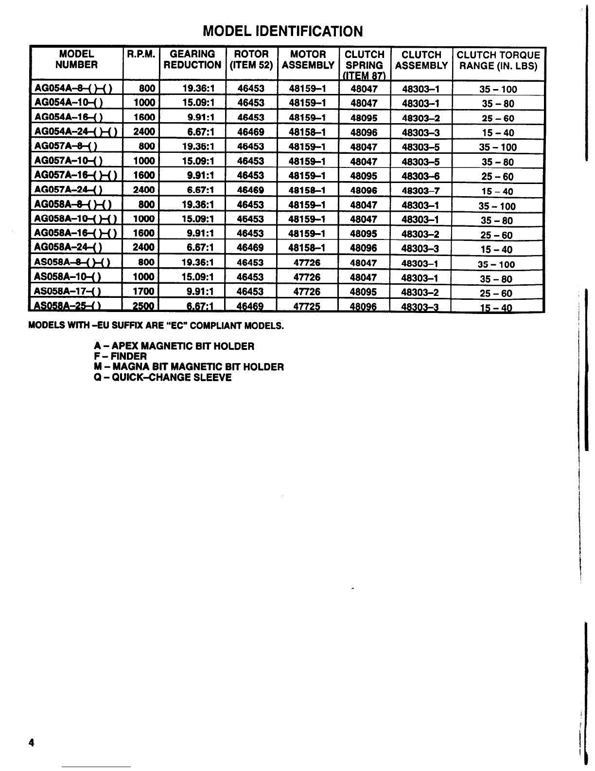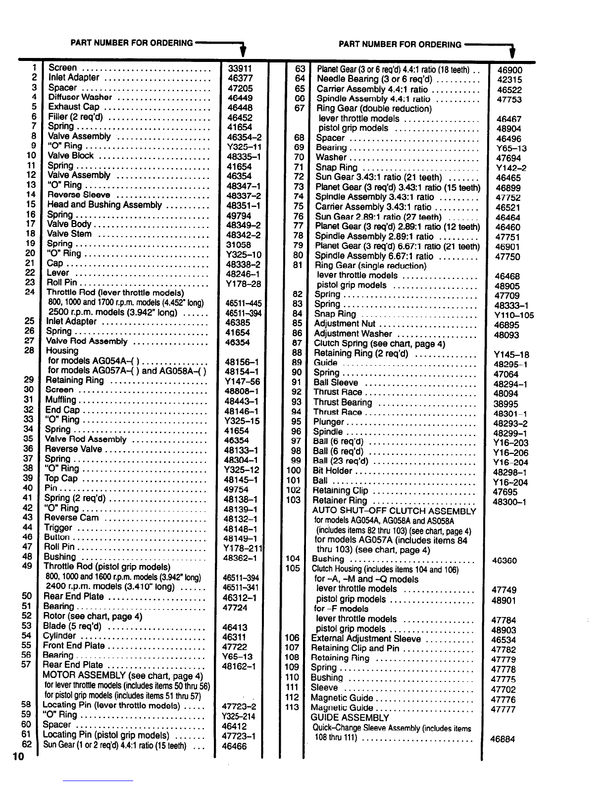 Clutch Spring (see chart, page 4)