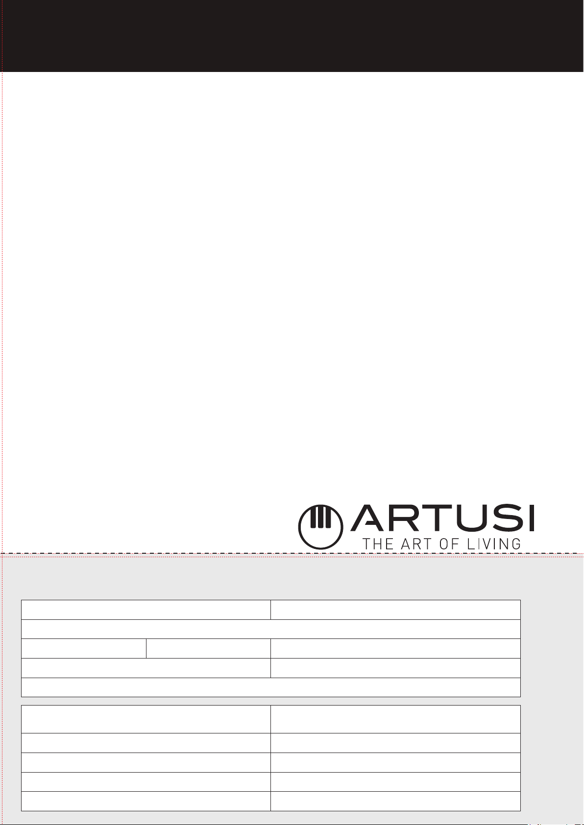 Warranty Card continued artusi.com.au