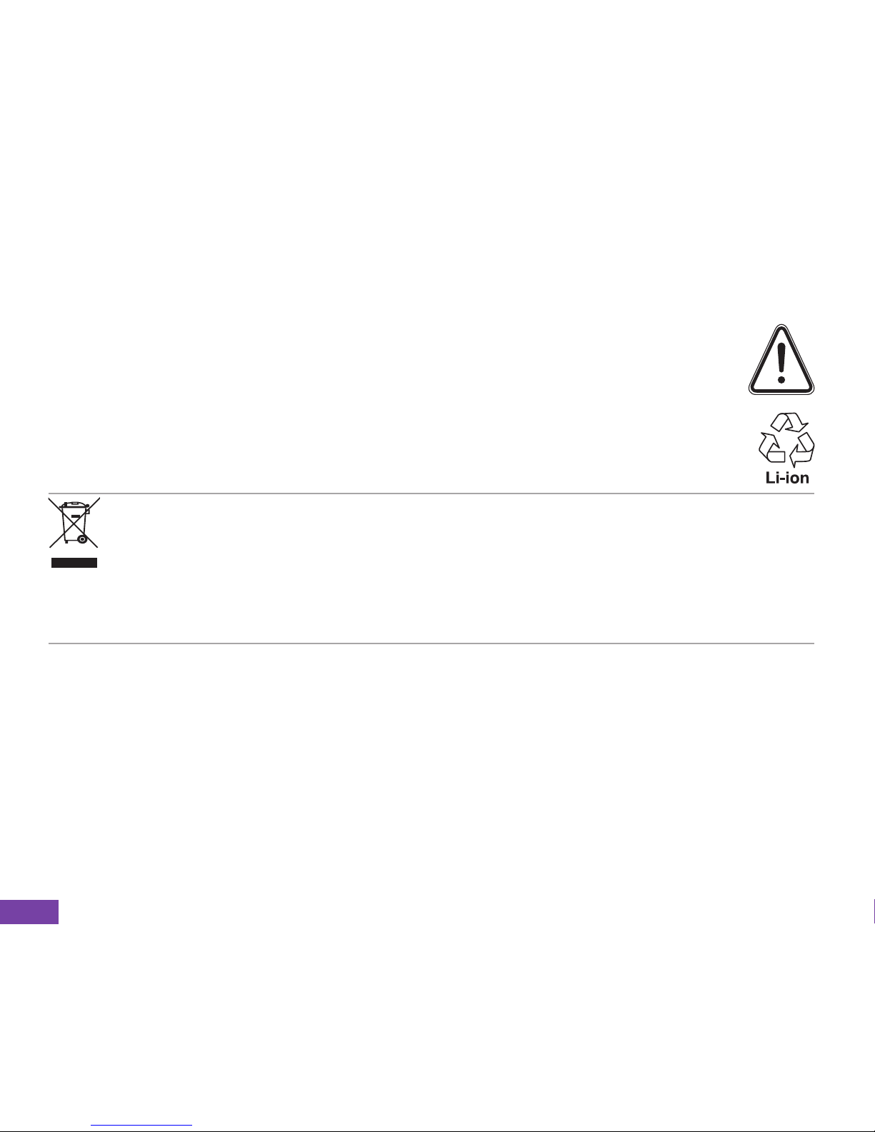 Battery pack care. This product contains a Li-Ion Polymer battery. There is a risk of fire
