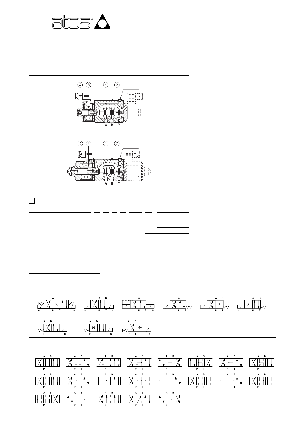 - золо ники ипов 0 и 3 могу пос авляю ся в исполнениях 0/1 и 3/1, при перекры ом соединении каналов с линией слива в цен ральной позиции.