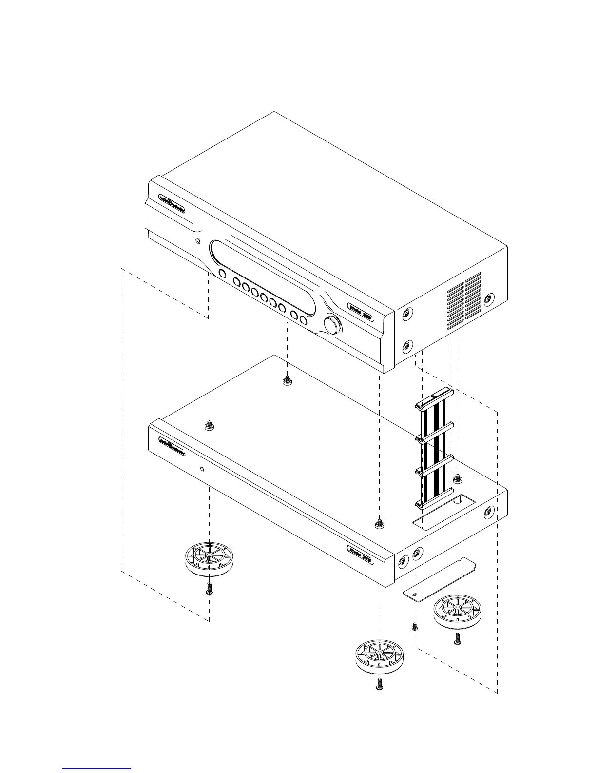 g. Install the bus port cover and feet you removed from Model 1166 on the bottom unit and turn the