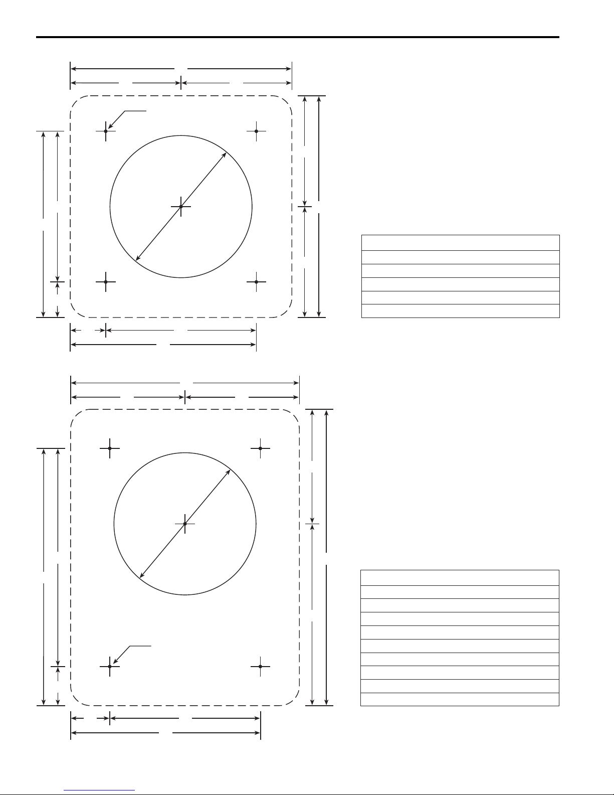2” clearance hole and four small pilot holes