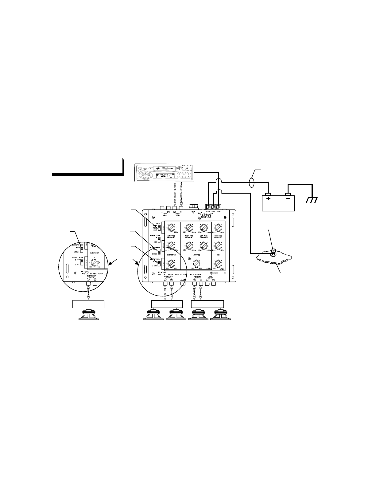“SUBWOOFER OUTPUT” and “MIDRANGE OUTPUT” jacks, and will be