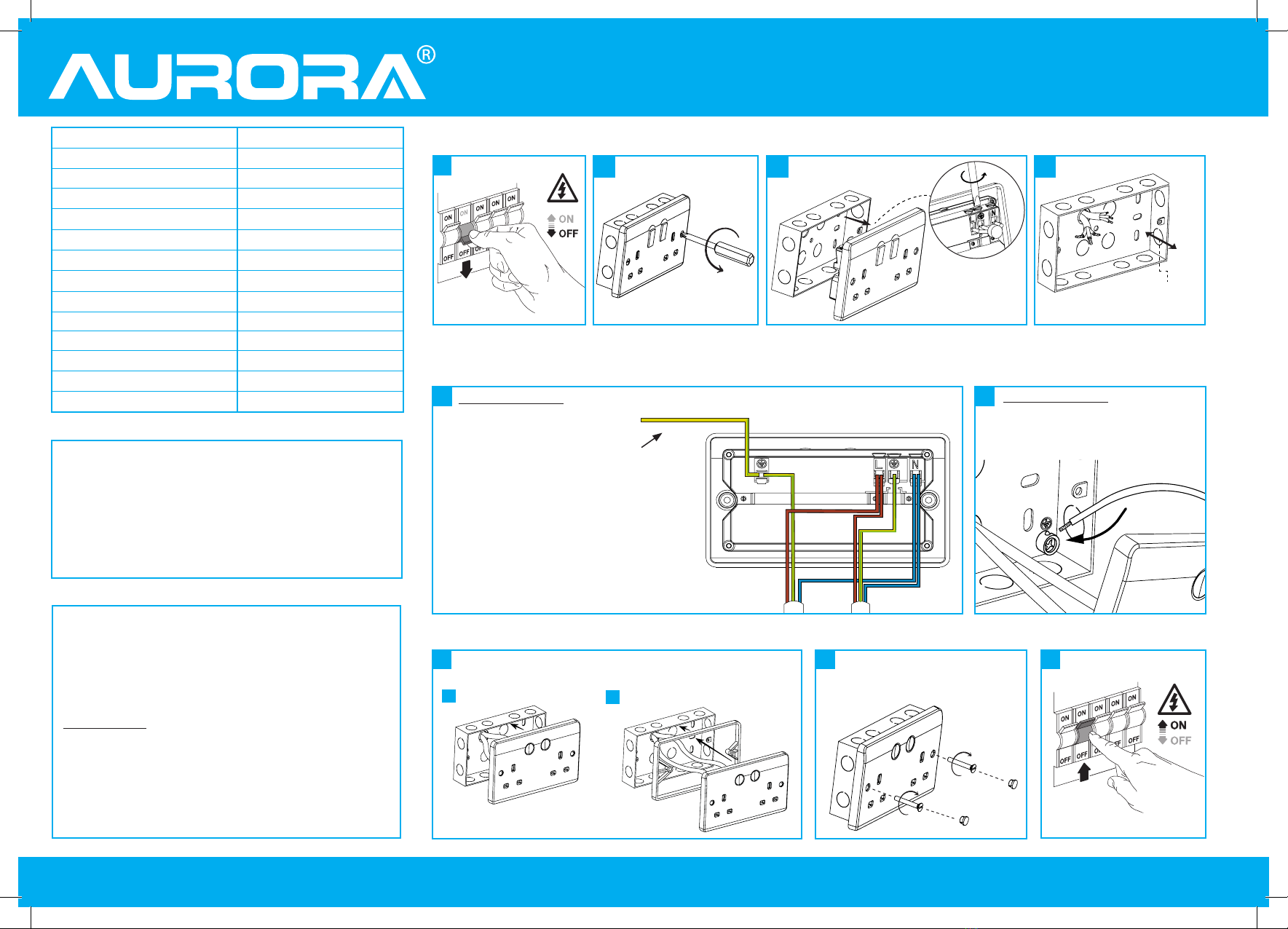 edition of the National Wiring Regulations. Should this product fail during the warranty period it will be replaced free of charge, this is subject to correct