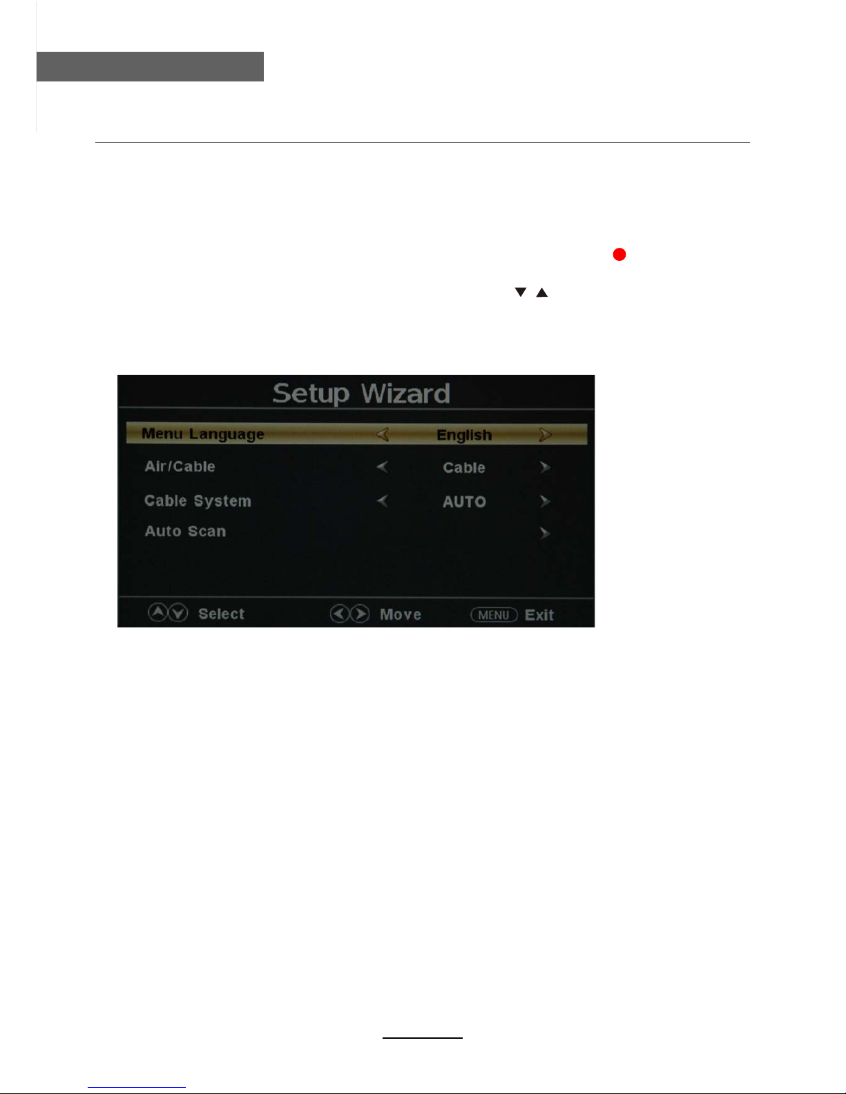 5.Select the Menu Language and cable system,then press button to start ,the “ Auto Scan”