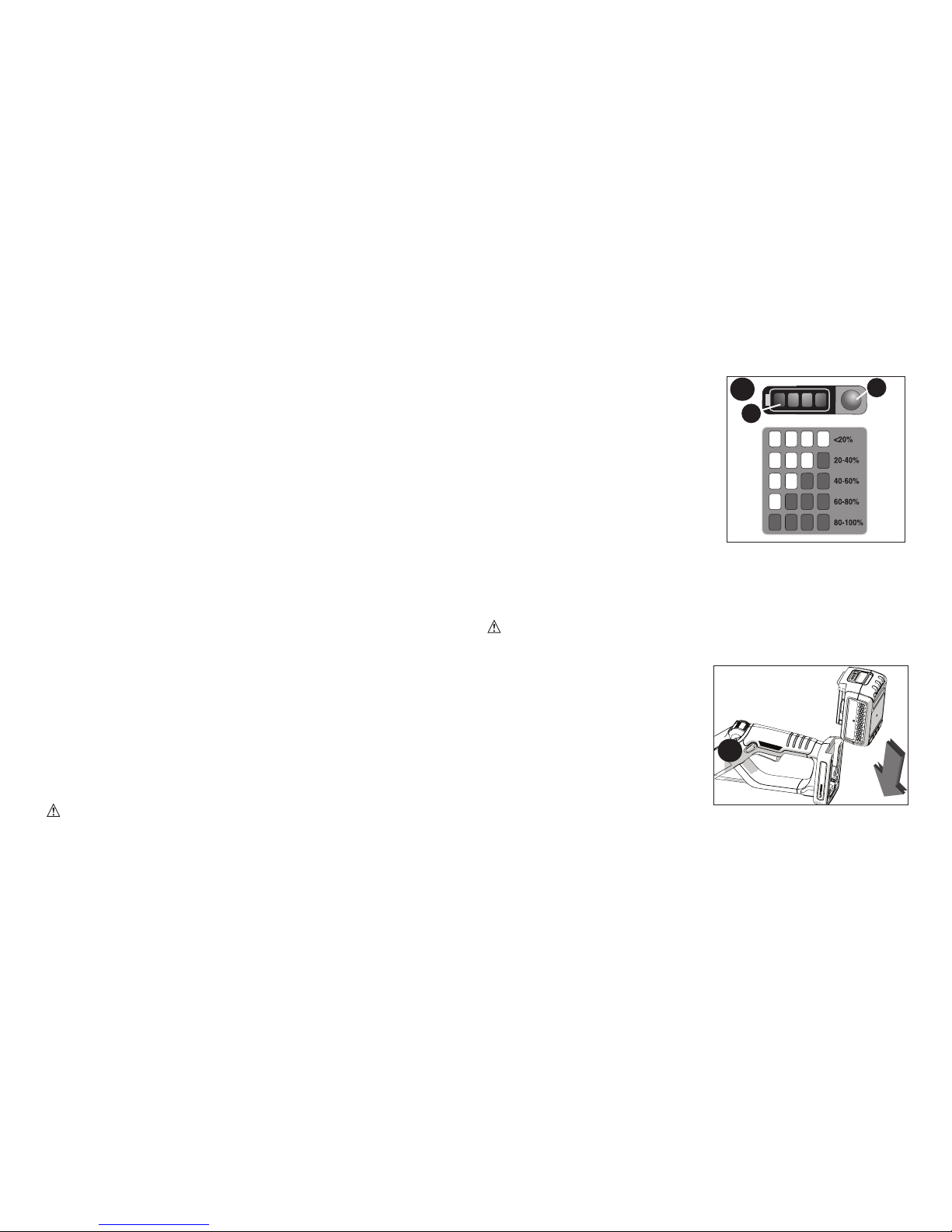 •Do not store or use the tool and battery pack in locations where
