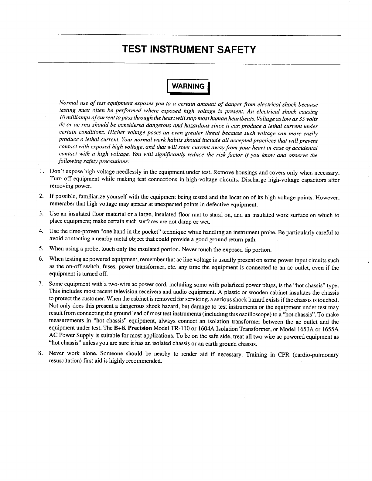 B+K precision TL89S1 Manuale di istruzioni