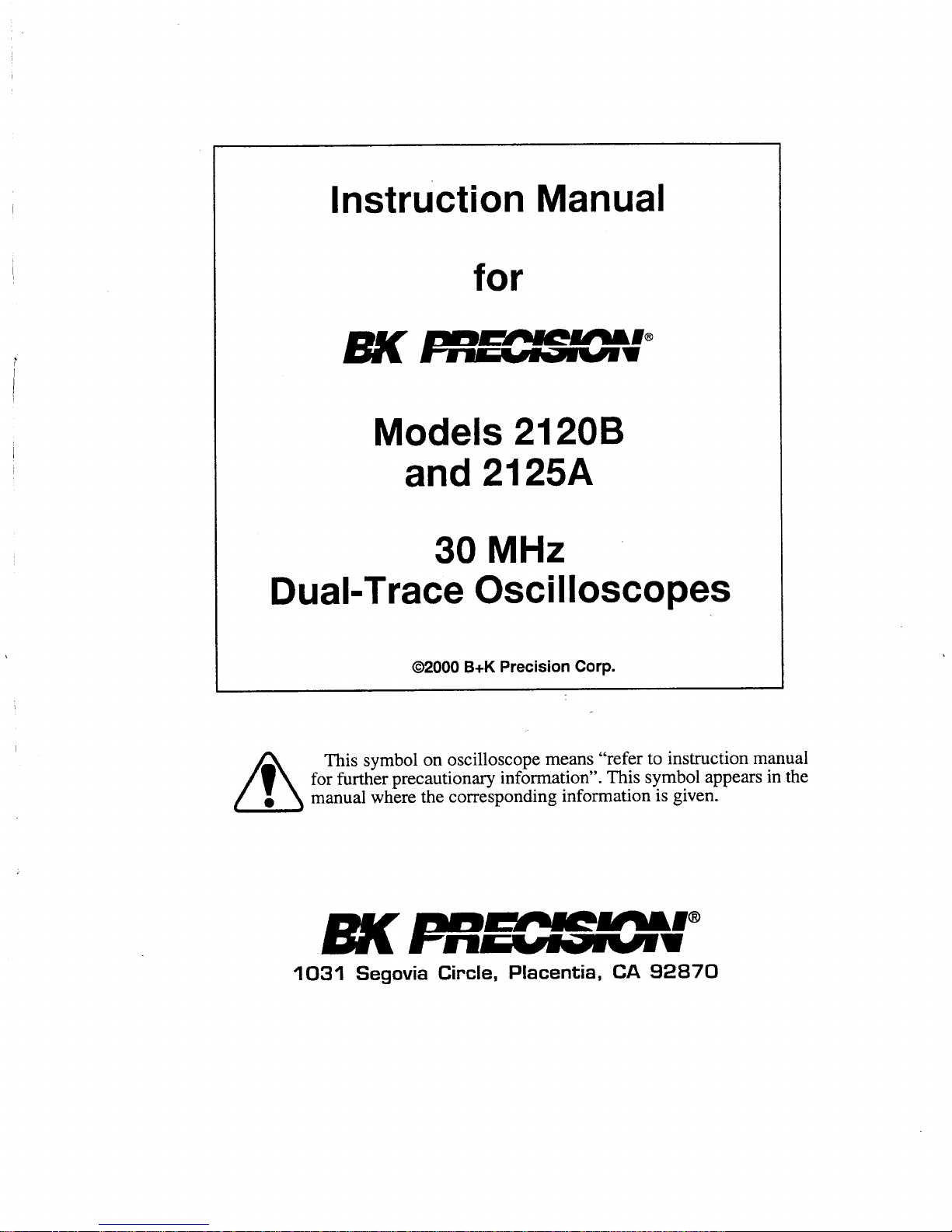 B+K precision 2125A Manuale utente
