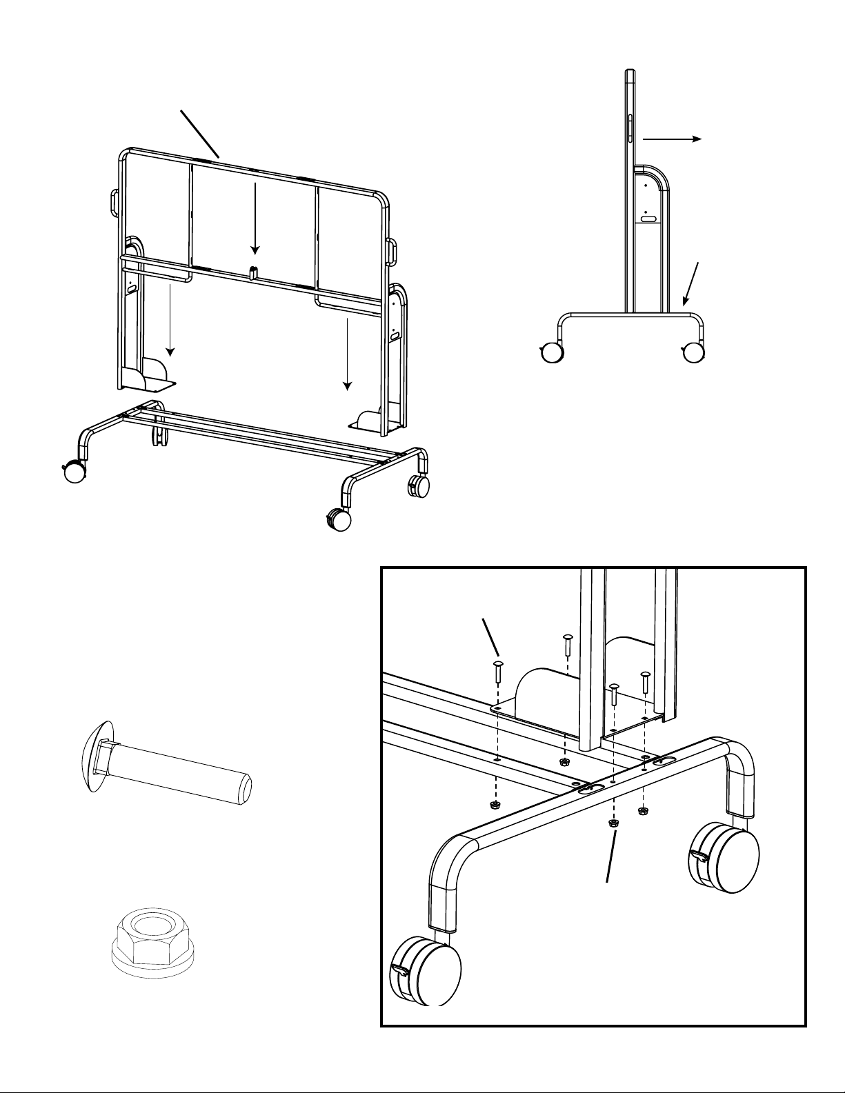 Keep ALL screws loose for adjustment after projector is mounted onto the cart.