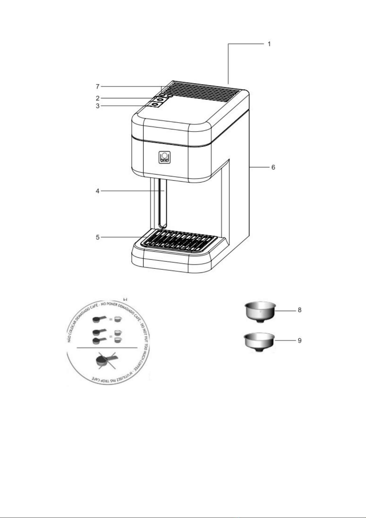 Todas as máquinas de café BRIEL são testadas durante o processo de fabrico, portanto não estranhe se encontrar gotas de água na