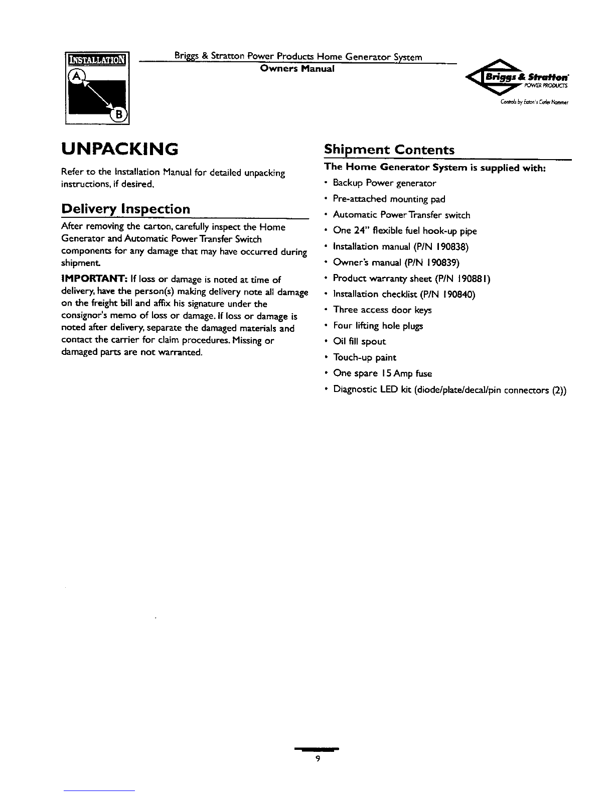 Briggs &Stratton Power Products Home Generator System