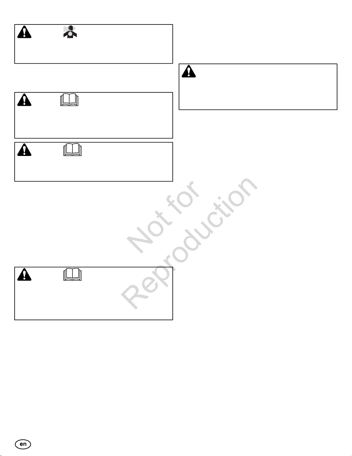• Do not tip the snowthrower at an angle which causes the