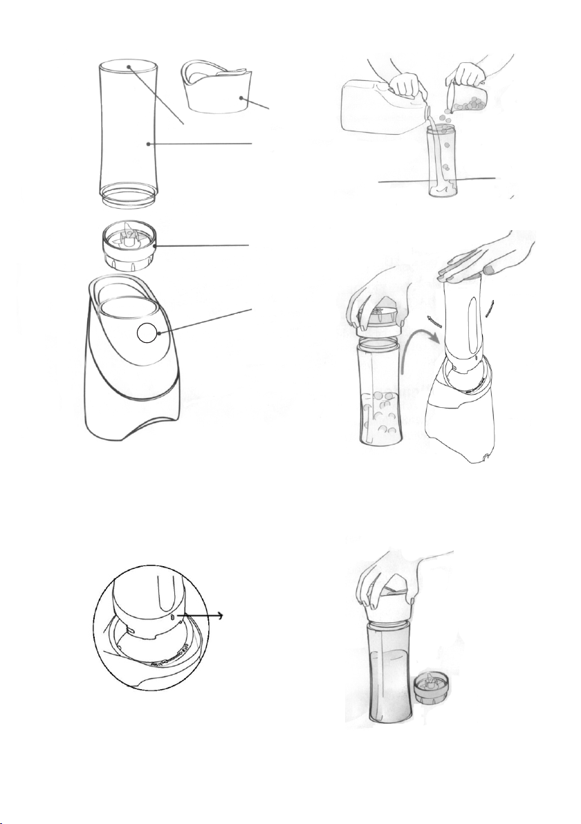 6. To start the blender, turn the cup (1c) to the right and turn on the button. Do not use the blender for longer than 2 minutes. T