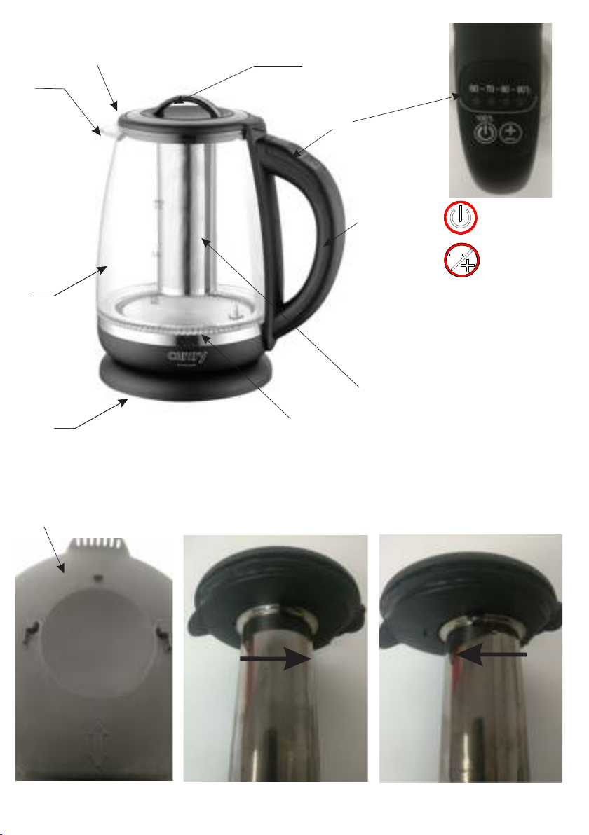 614.Es wird empfohlen, für zusätzlichen Schutz den Fehlerstromschutzschalter (RCD), dessen Bemessungsdifferenzstrom 30 mA nicht übersteigt, zu installieren. In diesem Bereich wenden Sie sich an einen Fachelektriker.19. Dieses Gerät dient zum Gebrauch im Haushalt und in ähnlichen Räumen, wie z.B.: Küchenräume für Personal in Geschäften, Büros und anderen Arbeitsumgebungen, Wirtschaftsräumen, von den Kunden in Hotels, Motels und anderen Wohnumgebungen dieser Art., in Schlaf- und Frühstücksräumen.10.Das Gerät auf eine kühle, gerade Fläche, entfernt von wärmeausstrahlenden Geräten, wie: Elektroherd, Gasherd, usw. stellen. 8.Regelmäßig das Kabel prüfen. Falls das Kabel beschädigt ist, sollte es in einem spezialisierten Service ausgetauscht werden, um ev. Gefährdung zu vermeiden. 16. WARNHINWEIS: Wenn das Wasser kocht, darf der Deckel nicht geöffnet werden. 15. Wenn der Wasserkocher überfüllt ist, kann kochend heißes Wasser aus ihm spritzen. 20. Immer besondere Vorsicht während des Wasserkochens im Wasserkocher üben. Gehäuse und Deckel des Wasserkochers nicht anfassen. Der Deckel des Wasserkochers während des Kochens bzw. gleich nach dem Wasserkochen nicht öffnen, der herauskommende Dampf kann eine Verbrennung verursachen. 22. Den Wasserkocher über das Niveau MAX oder unten MIN nicht füllen, weil es eine Verbrennung oder Beschädigung des Wasserkochers verursachen kann. 11.Das Gerät nicht in der Nähe von leicht entzündlichen Materialien benutzen.17. Der Wasserkocher darf ausschließlich mit dem gelieferten Untersatz benutzt werden. 12.Das Kabel darf nicht außerhalb der Tischkante hängen oder heiße Flächen berühren.18. ACHTUNG: Bevor der Wasserkocher vom Untersatz hochgehoben wird, ist zu prüfen, ob der Wasserkocher abgeschaltet wurde. 21. Den Wasserkocher darf man übertragen, indem man ihn ausschließlich an dem Griff hält24. Den Wasserkocher ohne Filter bzw. mit einem geöffneten Deckel nicht benutzen, weil dann der automatischer Ausschalter nicht betätigt wird. 13.Lassen Sie das Gerät oder den Adapter nicht unbeaufsichtigt, wenn es an das Stromnetz angeschlossen ist. 23. Den Wasserkocher ohne Wasser nicht anschließen, weil es dessen Beschädigung verursachen kann. 9.Falls das Kabel oder ein anderer Teil des Gerätes beschädigt oder das Gerät fallen gelassen wurde oder nicht ordnungsgemäß arbeitet, sollte es nicht benutzt werden. Das Gerät darf nicht durch unbefugte Personen repariert werden, da die Gefahr eines Stromstoßes besteht. Ein beschädigtes Gerät in einem spezialisierten Service zur Kontrolle oder Reparatur abgeben. Jegliche Reparaturen dürfen nur durch einen spezialisierten Service vorgenommen werden. Eine nicht korrekt ausgeführte Reparatur kann das Leben des Benutzers gefährden.25. Periodisch ist aus dem Wasserkocher Kalk mithilfe der dazu bestimmten Mittel zu entfernen. Benutzung des Wasserkochers mit einem gekalkten Heizelement verursacht dessen Beschädigung und Garantieverlust. Flüssigkeiten tauchen. Das Gerät vor Regen, Sonne usw. und vor Feuchtigkeit (z.B. im Badezimmer oder Campingwagen) schützen.27. Die Grundplatte des Wasserkochers darf man nicht unmittelbar in Wasser waschen, 26. Zum Waschen des Gehäuses des Wasserkochers darf man keine aggressiven Reinigungsmittel verwenden, welche den Wasserkocher beschädigen oder die aufgetragenen Kennzeichnungen entfernen könnten.
