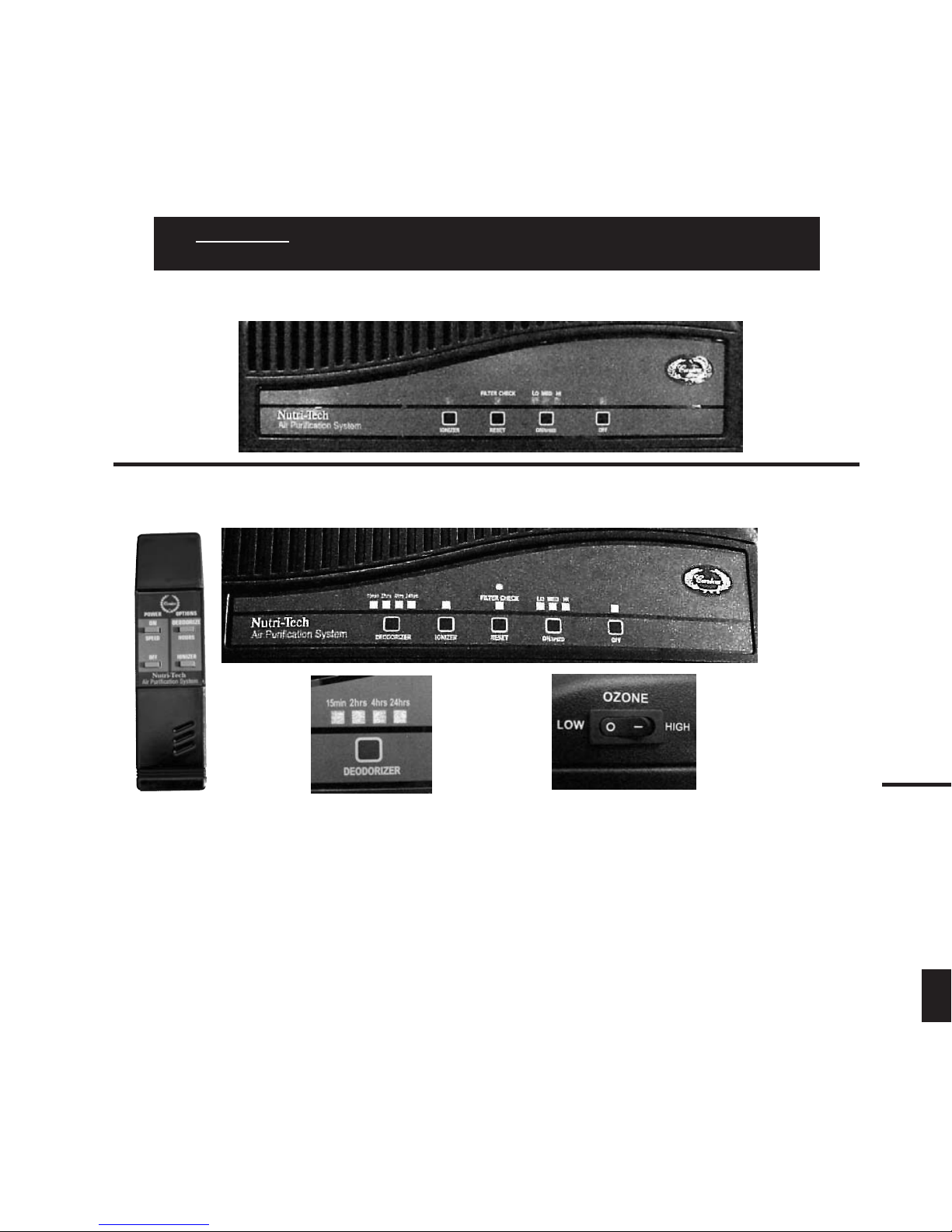 deodorizing and sterilizing. When the system is set on the low output and in a 15-