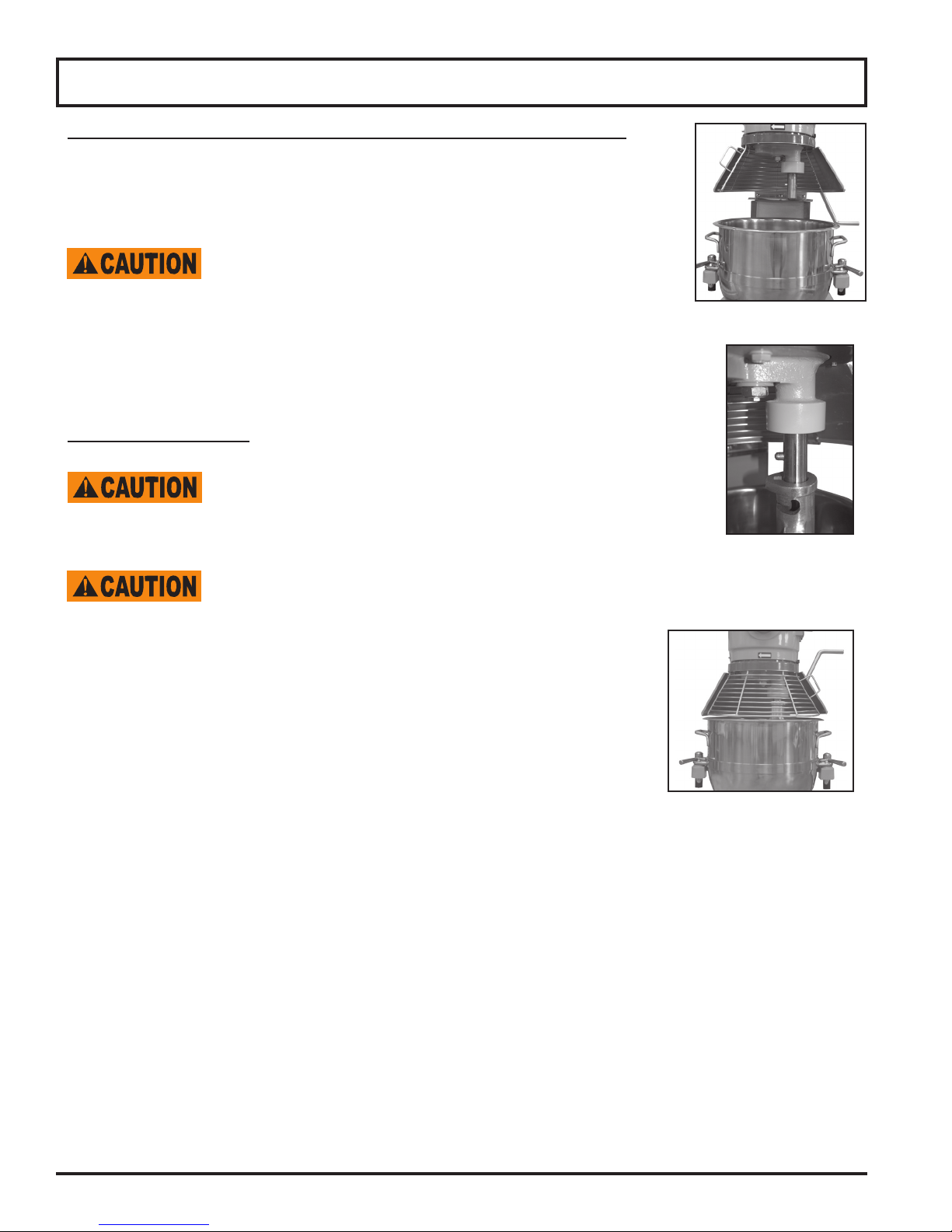 The mixer must be OFF before installing attachments! Do NOT use attachments while mixing!