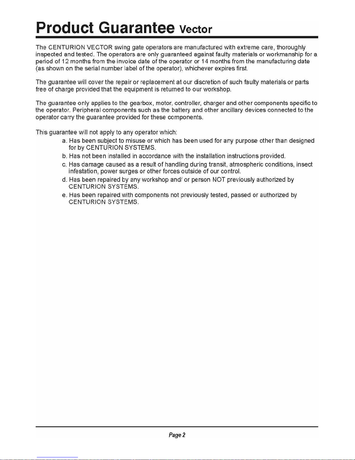 Centurion VECTOR2 Manuale utente