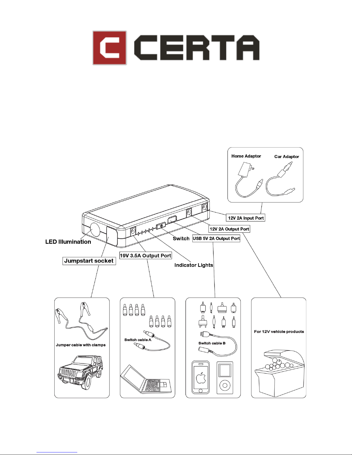 Connect the optional switch cable and the 12V vehicle product or 12V electronic device.